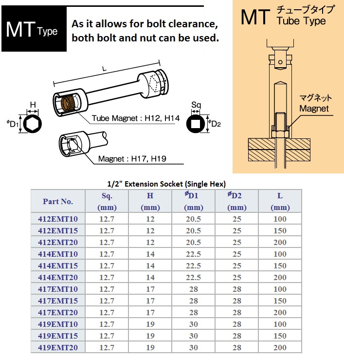 1/2" MT Extension Socket (Tube Magnet Type)