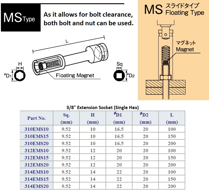 1/2" MP Extension Socket (Fixed Magnet Type)
