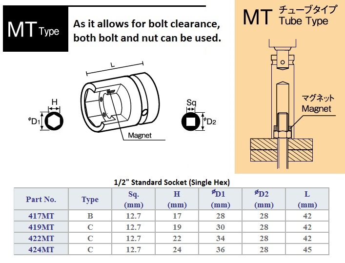 1/2" MT Standard Socket (Tube Magnet Type)