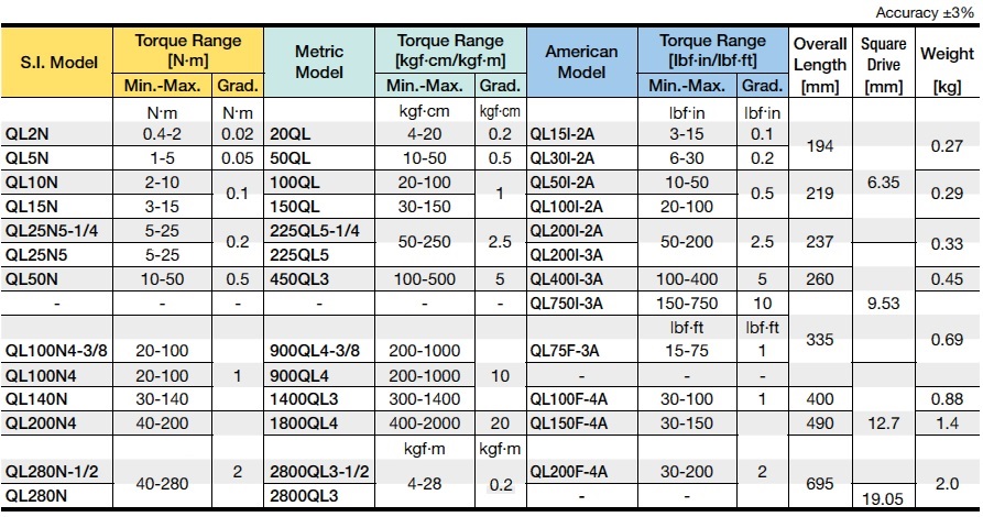 QL Adjustable Torque Wrench (range up to 280Nm)
