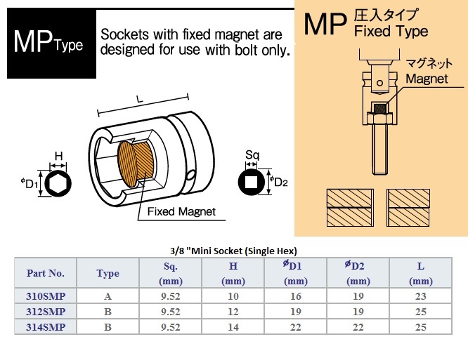3/8" MP Mini Socket (Fixed Magnet Type)