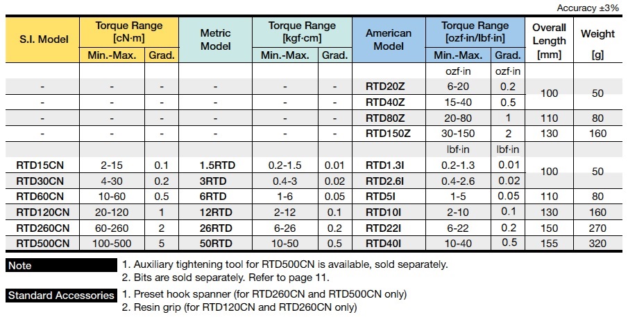*Resin grip handle available for RTD120CN and RTD260CN only.