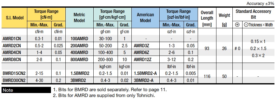 Same features as RTD except AMRD / BMRD is designed for tightening small screws.