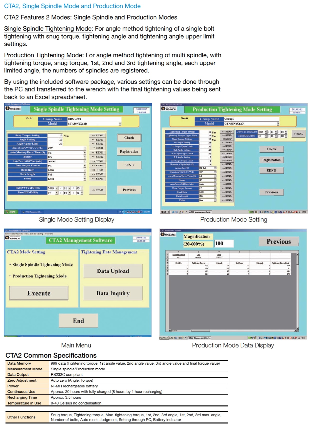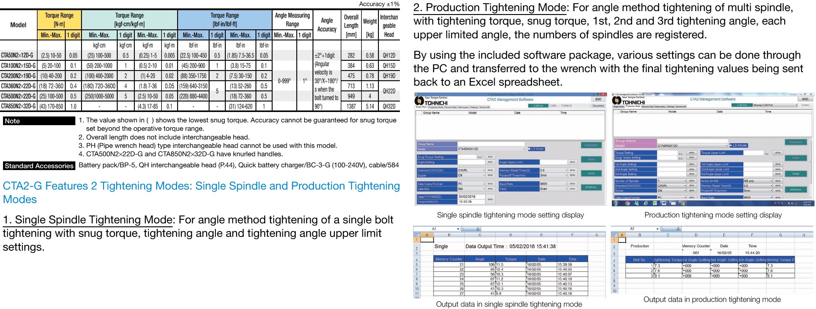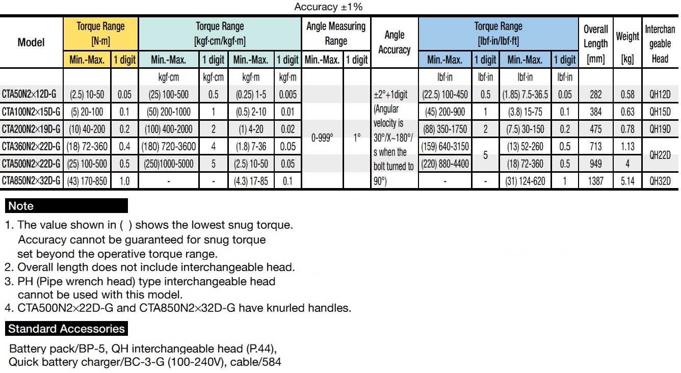 - 999 data memory storage for snug torque, 1st/ 2nd/3rd angles, final torque and tightening start time.