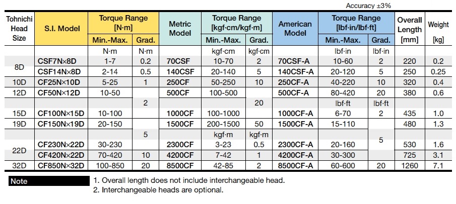 **Note that CSF Torque Wrenches need to go with matching Tohnichi Head Sizes.