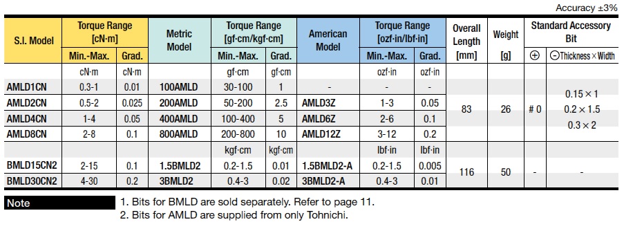 Same features as LTD except AMLD / BMLD is designed for tightening small screws.