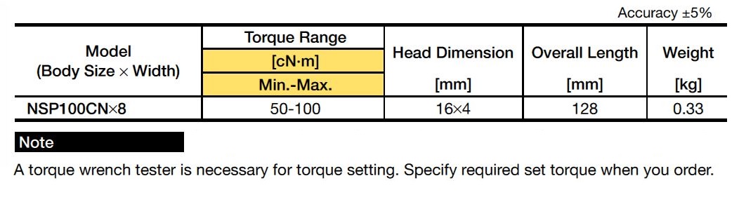 - Preset style, no external scale: Torque value is set using thrust ring tool and a torque tester.