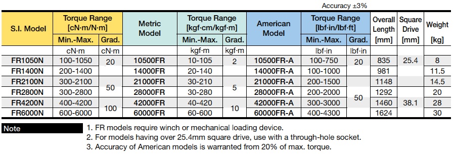FR models are mechanical loading type. Force is applied by winch or lever block.