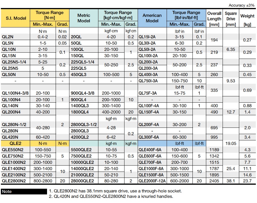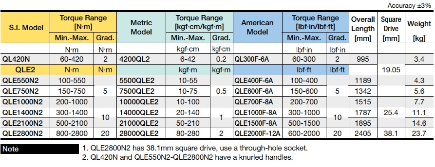 QL Adjustable Torque Wrench (range up to 280Nm)